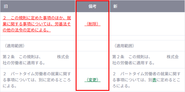 ✓ 備考欄には「追加/削除」などの自動コメント